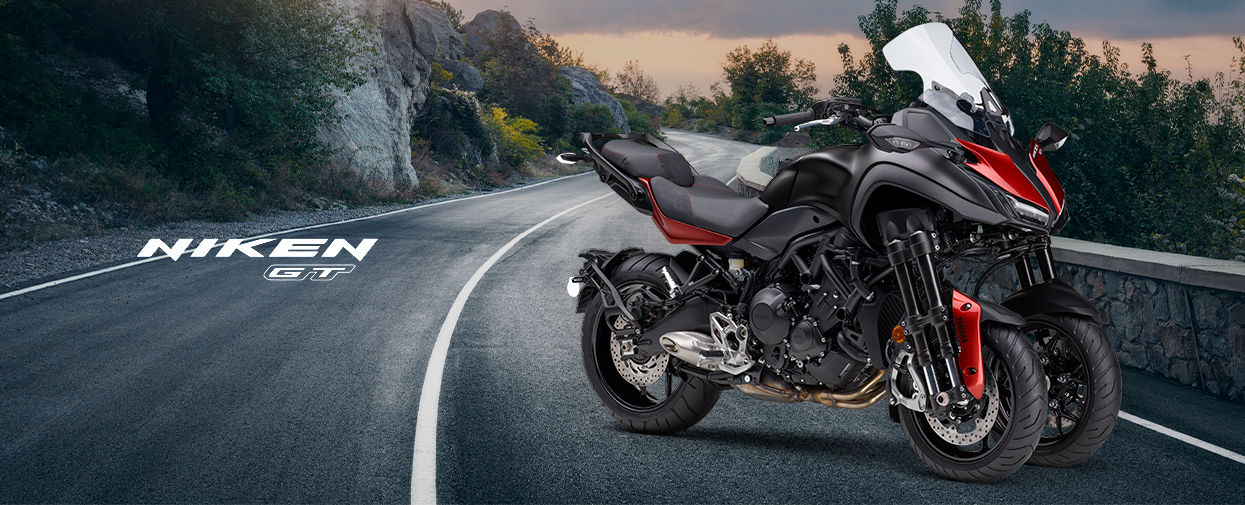 Entre las especificaciones para trayectos largos de la NIKEN GT se incluyen un parabrisas alto, además de calefactores de empuñadura y un asiento cómodo, un caballete y una toma de CC adicional. Con sus altos niveles de comodidad y funcionalidad, esta radical motocicleta de Sport Tourer de 3 ruedas se ha creado para el disfrute durante todo el año aunque llueva, haga frío o calor.